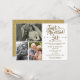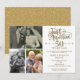 Personalize com suas 3 fotos favoritas e os detalhes da celebração do seu aniversário de bodas de ouro de 50 anos em tipografia dourada chique. O verso apresenta confetes de coração de amor dourados. Desenhado por Thisisnotme©