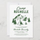 Convite de despedida de solteira de acampamento moderno é perfeito para qualquer noiva que está pronta para se divertir e se sujar! O convite apresenta um desenho de um local de acampamento com montanhas, árvores, uma fogueira, uma barraca e um modelo de texto que é fácil de personalizar.