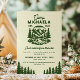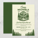 Convite de fim de semana de despedida de solteira em acampamento para retiros em cabines ao ar livre e aventuras em parques nacionais define o tom para uma viagem de garotas com um visual moderno e vintage de acampamento, perfeito para montanhas, lagos e viagens de glamping. A frente apresenta uma ilustração de emblema retrô em verde floresta profundo sobre creme quente com o nome da noiva, ano de estabelecimento, datas do fim de semana, localização e detalhes de RSVP, além do slogan divertido “última trilha antes do véu”, tornando fácil personalizar para qualquer despedida de solteira de aventura rústica. Use-o para anunciar um fim de semana em cabine, celebração de caminhada e caiaque, noites de fogueira aconchegante ou uma retirada da rede com sua turma. Este convite inspirado na natureza combina facilmente com sinalização, brindes e decoração correspondentes se você estiver construindo um tema de acampamento coeso, e a paleta atemporal combina bem com flanelas, louças de esmalte e decoração ao ar livre. Ideal para reuniões locais e fins de semana de despedida de solteira de destino, combina com estilos populares como chique rústico, pôster de parque nacional, acampamento cottagecore e clássico moderno. Disponível como cartões impressos ou download digital instantâneo, este convite