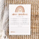 Este cartão de conselhos e previsões de chás de fraldas apresenta um arco-íris laranja queimado boêmico e letra manuscrita divertida. Esta design neutra do sexo pode ser usada para qualquer garoto ou garota. Edite facilmente todas as cores para atender às necessidades do seu evento.