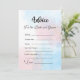 Apresentando o "Advice For the Bride and Groom", um jogo de chá de panela sensato e significativo que vai além do entretenimento, fornecendo uma plataforma para familiares, amigos e entes queridos para oferecer seus conselhos sinceros de uma forma segura e amorosa. Este belo jogo apresenta uma bonito letra preta que lê "Conselhos para a noiva e o noivo", definindo o tom para uma troca sincera e genuína de sabedoria e desejos. O pano de fundo das cartas ostenta um design bonito e moderno, combinando cores aquáticas cor-de-rosa macio e azul sereno com golpes de ouro elegantes. Esta obra-prima de aquarela cativante adiciona um toque de sofisticação e talento contemporâneo, fazer-a um ajustado perfeito para qualquer chá de panela, chá de casamento ou jogo de casamento. Cada cartão é cuidadosamente posicionado com espaços designados sob títulos como "Sempre", "Às vezes", "Nunca", "Não te esqueças" e "Desejo a ambos". Estas incitações inspiram os hóspedes a despejar os corações, oferecendo conselhos genuínos e bençãos sinceras ao feliz casal. À medida que a noiva e o noivo coletam esses sentimentos preciosos, eles criam uma vigilância que os acompanhará ao longo de sua jornada juntos, servindo como um lembrete do amor e apoio que eles têm de seus entes queridos. Um belo toque é a inclusão da palavra "Amor" na parte inferior de cada carta, convidando os hóspedes a assinar os seus nomes e a deixar um símbolo do seu afeto. Quer sejam impressos profissionalmente para um toque polido ou impressos com cuidado pelo anfitrião, "Conselhos para a Noiva e o Crescimento" torna-se uma coleção carinhosa de sentimentos sinceros que serão apreciados por anos vindouros. Este jogo comovente promove um espaço seguro e sem confronto para que os entes queridos ofereçam orientação, amor e apoio aos recém-casados. Como a noiva e o noivo leram através dos conselhos coletados, eles ficarão comovidos com os sinceros desejos e palavras pensativas compartilhadas por seus queridos círculos de família e amigos. "Advice For the Bride and Groom" não é apenas um jogo; é uma profunda tradição que encapsula o amor e o cuidado em torno do casal em seu dia especial. Com a sua elegante abordagem design e corajosa, "Conselhos para a Noiva e o Crescimento" torna-se um eterno, simbolizando o início de uma bela jornada cheia de amor, compreensão e memórias queridas.