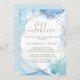 Este convite de cartão de aquarela geométrica é perfeito para um evento moderno. O design apresenta aquarela azul celeste suave e azul turquesa sobreposta com formas geométricas em brilho de falso champagne dourado magnífico. Este convite é perfeito para uma festa de noivado, despedida de solteira ou qualquer evento ou festa.