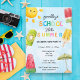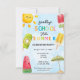 Anúncio editável do fim da escola, olá verão, adeus de volta à escola, sol, salto, água escorregada, convite para impressão, download instantâneo
