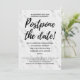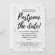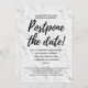 Anuncie o adiamento ou cancelamento da sua cerimônia de casamento, recepção, todo ou parte do seu evento com este belo cartão de anúncio "Adiar a data". O moderno e elegante fundo de mármore branco contemporâneo com letras negras tipográficas é clássico e perfeito para manter seus convidados informados.
