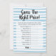 Azul e branco adivinhem o jogo do preço certo para o chá de fraldas do menino. Listras brancas e horizontais desenhadas à mão.