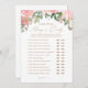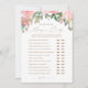 Peça aos chás de fraldas que participem de um jogo de 'Adivinhem Quem: Mamãe ou Pai com este cartão elegante de jogo, com tipografia dourada e flores cor-de-água cor-de-rosa-rosa-claro.