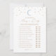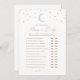 Peça aos chás de fraldas que participem de um jogo de 'Adivinhem Quem: Mamãe ou Pai com este cartão de jogo elegante, com tipografia de ouro e design de lua azul.