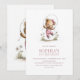 Convite Adorable Girl Teddy Bear 1st Birthday