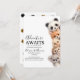 Get ready for an adorable celebration with our "Adventure Awaits" Woodland Animals Baby Shower Invitation! This charming design features a delightful stack of cute forest creatures – a playful panda, a foxy friend, a sweet duckling, a spiky hedgehog, and a cuddly koala – all peeking out to welcome your guests.