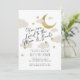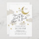 Este convite para chás de fraldas giro e moderno apresenta um roteiro moderno de pincel com nossa ilustração de nuvens desenhadas, acentuadas com estrelas falsas de folha de ouro e uma lua.