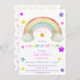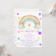 Adorável convite de aniversário de uma estrela do arco-íris. Convide a família e os amigos para a sua festa de aniversário com o nosso convite de aniversário- arco- íris e estrela personalizável, adicionando um nome e detalhes da festa.