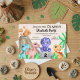Este é um adorável convite de aniversário para a festa de aniversário de um menino. A ilustração consiste em 4 adoráveis dinossauros bebês com um vulcão no fundo e alguma folhagem. O cartão pode ser personalizado com seus próprios detalhes.