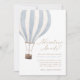 Convide amigos e família para compartilhar a alegria da chegada do seu pequeno com este chá de fraldas, com um balão azul de ar quente e uma elegante tipografia de ouro.