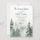 A quiet misty ethereal forest sets the scene for this modern watercolor baby shower invitation. Soft evergreen trees fade into a pale white sky, framing elegant mixed typography with the phrase The Journey Begins at the top and the parent to be’s name highlighted in flowing script. Sage green tones and airy white space keep the design calm, nature inspired, and completely gender neutral for any baby. Personalize the text with your shower details, RSVP information, and registry wording to create a unique invitation that feels like the start of a new adventure. A lovely choice for parents who love the outdoors and are searching for forest baby shower invitations with a modern, minimalist feel. Available in print, as a digital download, or both!