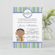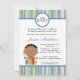 Estes convites azuis adoráveis do chá de fraldas do bebé do afro-americano são imprimidos em um papel liso, vibrante, matte feito sob medida 5x7 do peso do cobrir 110lb. Contem o índice do reciclado de 50%. Aperfeiçoe para qualquer chá de fraldas, nupcial, bachelorette, casamento, ou convite do aniversário.