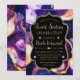 Celebre com elegância cósmica neste design de ágata celestial, apresentando camadas giratórias de roxo, branco e preto com sotaques dourados radiantes. As texturas marmorizadas evocam a beleza de geodos polidos, enquanto a placa preta ornamentada adiciona um toque de sofisticação formal. Perfeito para eventos marcantes, decoração glamorosa ou celebrações temáticas espaciais, este design combina riqueza geológica com charme celestial.