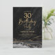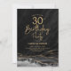 Convite de festas de aniversário de 30 anos preto e dourado. Elegante design moderno com aquarela agate marble geode background, faux glitter gold e typografia script font. Trendy convida o cartão perfeito para uma comemoração de dia das mulheres na moda. Impressos convites Zazzle ou modelo de impressão digital instantânea para download.