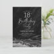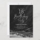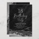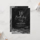 Preto e prateado agate 18º convite de aniversário. Elegante design moderno com aquarela agate marble geode background, faux glitter prata e tipografia. Trendy convida o cartão perfeito para uma comemoração de dia das mulheres na moda. Impressos convites Zazzle ou modelo de impressão digital instantânea para download.