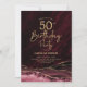 Borgonha e ouro agitam 50º convite de aniversário. Elegante design moderno, com a cor da água do vinho tinto-escuro de marsala, com o fundo geode do mármore, o dourado falso brilho e o guião tipográfico. Trendy convida o cartão perfeito para uma comemoração de dia das mulheres na moda. Impressos convites Zazzle ou modelo de impressão digital instantânea para download.