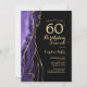 Roxo, preto e dourado agam o 60º convite de aniversário. Elegante design moderno com aquarela agate marble geode background, faux glitter gold e typografia script font. Trendy convida o cartão perfeito para uma comemoração de dia das mulheres na moda. Impressos convites Zazzle ou modelo de impressão digital instantânea para download.