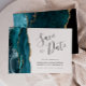 Convite Agate Elegante Azul Teal Dourado Salvar Data