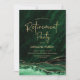 Emerald Green e ouro agate convite de festas de aposentadoria. Elegante design moderno com aquarela agate marble geode background, faux glitter gold e typografia script font. Trendy convida o cartão perfeito para uma celebração de na moda. Impressos convites Zazzle ou modelo de impressão digital instantânea para download.