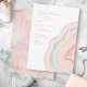 Nem todos os designs de casamento são criados iguais. Os layouts assimétricos para as peças neste impressionante conjunto de casamento provam que isso não é ruim! Banda de cor ondulada em tons contrastantes de azul-rosa e azul-lacrimogêneo com um centro de cristal brilhando formam um sotaque geode/agate na maioria das peças do conjunto. O convite 'Chá de panela' do casamento mostrado aqui apresenta o acima mais uma modelo para adicionar os detalhes do evento e as informações de RSVP para seus convidados. O reverso tem um fundo de abstrato de coordenação que lembra a pedra veiculada com brilho. Procure ID647 para ver todas as peças de coordenação neste conjunto.