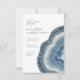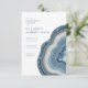 Nem todos os designs de casamento são criados iguais. Os layouts assimétricos para as peças neste impressionante conjunto de casamento provam que isso não é ruim! Bandas onduladas de cor em tons de azul empoeirado a bege arenoso com um centro de cristal brilhando formam um sotaque geode/agato na maioria das peças do conjunto. O convite 'Janto de ensaio' do casamento mostrado aqui apresenta o acima mais uma modelo para adicionar os detalhes do evento e as informações de RSVP para os seus convidados. O reverso tem um fundo de abstrato de coordenação que lembra a pedra veiculada com brilho. Procure ID647 para ver todas as peças de coordenação neste conjunto.