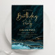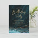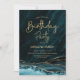 Teal e convite de aniversário de agata de ouro. Elegante design moderno com cor aquosa turquesa agate marble geode background, faux glitter gold e typografia script font. Trendy convida o cartão perfeito para uma comemoração de dia das mulheres na moda. Impressos convites Zazzle ou modelo de impressão digital instantânea para download.
