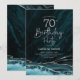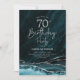 Convite de aniversário de 70 de gás lacrimogêneo e prateado. Elegante design moderno, com cor aquática turquesa agate marble geode background, faux glitter prata e script de tipografia. Trendy convida o cartão perfeito para uma comemoração de dia das mulheres na moda. Impressos convites Zazzle ou modelo de impressão digital instantânea para download.