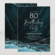 Convite de aniversário de 80 de gás lacrimogêneo e prateado. Elegante design moderno com cor aquosa turquesa agate marble geode background, faux glitter gold e typografia script font. Trendy convida o cartão perfeito para uma comemoração de dia das mulheres na moda. Impressos convites Zazzle ou modelo de impressão digital instantânea para download.