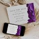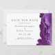 A borda direita deste elegante moderno salve a placa de data apresenta uma cor d'água púrpura e borda agitada com falso brilho prateado. O texto personalizável combina as fontes de cinza de carvão se e copperplate em um fundo branco. O verso apresenta um design de agata prateado e roxo correspondente.