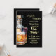 A modern birthday party invitation with bold numbers, a bottle of whiskey and a glass of whiskey. Customize the details for a unique and cool birthday celebration.
