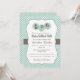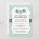 design de chá de fraldas de SHAKE RÁPIDO e ROLL com garrafa de bebê, carruagem de chocalho e bebê e pequenos corações. Fundo de bolinhas azul e branco. Personalize-o com seu próprio texto personalizado. PinkInkArt original!