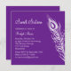 Uma pena de pavão esperta enfeite este convite de uma forma chica, nova e moderna. É apresentado no papel de base; no entanto, recomendo o peso e a textura do papel de linho.