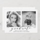 Nossa festa de formatura de fotos "Agora e Depois" na na moda convida a exibir sua foto favorita do mais velho (agora), assim como uma foto de bebê ou criança (então). Alterar os anos abaixo de cada foto para refletir o ano de graduação e o ano de nascimento (ou a foto do ano foi tirada). Os convites de festa de formatura modernos exibem "formando" em uma fonte elegante com o nome do formando, o nome da escola e o ano de classe abaixo. O reverso dos convites de festa de formatura de tendências apresenta os detalhes de sua festa em letras negras elegantes.