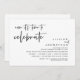 Tema de script preto moderno, cartão de convite de casamento íntimo (Agora é hora de celebrar). É perfeito para o seu casamento íntimo / festa de celebração pós-casamento. Adicione seus detalhes em fonte / letra preta correspondente.