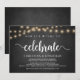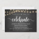 Agora é hora de celebrar, Anúncio de Casamento / Cartão de Convite, em Quadro de Giz de Fazenda Rústica, design de Luzes de Corda. Isto é perfeito para a recepção do seu casamento e festa de celebração pós-casamento. Adicione seus detalhes em fonte / letra correspondente.