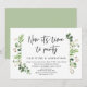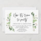 Cartão de convite de casamento íntimo com tema de folhagem verde de verão, com escrita preta moderna (Agora é hora de festejar). É perfeito para o seu reception de casamento íntimo / festa de celebração pós-casamento. Adicione seus detalhes em fonte / letra preta correspondente.