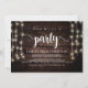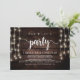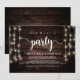 Agora é hora de festa, Anúncio de Casamento / Convite de Elopamento, em madeira rústica de fazenda, com iluminação de corda. Isto é perfeito para a recepção do seu casamento e festa de celebração pós-casamento. Adicione seus detalhes no tipo de letra correspondente.