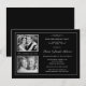 Crie seus próprios convites elegantes para a festa de aniversário de 25 anos de casamento com duas (2) inserções de fotos e adoráveis detalhes prateados vintage em fundo preto. Tipografia em estilo letterpress formal. Elegante, acessível e exclusivamente personalizado para você! Adicione suas próprias fotos "Passado e Presente" e personalize o nome, data e detalhes para o seu feliz evento. Pode ser facilmente personalizado para outras ocasiões especiais e celebrações de marcos. Perfeito como um objeto de recordação emoldurado que sua família irá guardar para sempre. **OBSERVAÇÃO: Tamanho para cartões de convite planos pequenos. Outros tamanhos e estilos disponíveis. © Teri Francis. Selos e cartões de agradecimento combinando disponíveis.