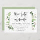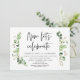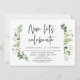 Cartão de convite de casamento íntimo com tema de folhas verdes de verão, com escrita preta moderna (agora vamos celebrar). É perfeito para o seu jantar de recepção de casamento íntimo / festa de celebração pós-casamento. Adicione seus detalhes em fonte preta correspondente.