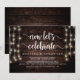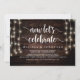 Agora vamos celebrar, Anúncio de Casamento / Convite, em Madeira Rústica de Fazenda, design de Luzes de Corda. Isso é perfeito para o seu casamento e festa de celebração pós-casamento. Adicione seus detalhes na fonte / letra correspondente.