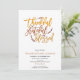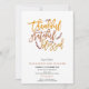 Palavras inspiradoras Graças, Grateful, abençoado em um roteiro elegante em cores internas estão na metade superior, e os detalhes estão abaixo em um fundo branco. Personalize facilmente o texto com seus detalhes.