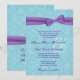 Este design com seu lindo laço roxo falso impresso e seu fundo aqua xadrez damasco faz um convite de casamento elegante. Eu recomendo o papel metálico de cor gelo que dá ao seu convite um brilho e um esplendor especiais. Você pode experimentar diferentes tipos de papel para obter exatamente a aparência que você deseja.