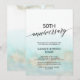 Este cartão de convite de aniversário de casamento com aquarela aqua e dourada é perfeito para uma festa de aniversário de casamento em um destino tropical. O design simples e moderno apresenta uma impressionante aquarela turquesa, azul esverdeado e azul claro com um brilho suave dourado que lembra a areia e o mar. É combinado com uma caligrafia elegante e linda.