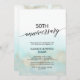Este cartão de convite de aniversário de casamento com aquarela aqua e dourada é perfeito para uma festa de aniversário de casamento em um destino tropical. O design simples e moderno apresenta uma impressionante aquarela turquesa, azul esverdeado e azul claro com um brilho suave dourado que lembra a areia e o mar. Ele é combinado com uma caligrafia elegante e linda.