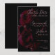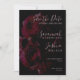 Convite de casamento com ilustração em aquarela de flores negras para "Save the Date", ótimo para casamentos na primavera, verão, outono ou inverno. Esses convites "save-the-date" apresentam uma ilustração de rosa floral escura em aquarela. Personalize o cartão com os nomes da noiva e do noivo em tipografia elegante. As cores incluem framboesa, rosa, vermelho e preto. Por favor, veja a foto para referência de cor.