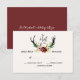 ♥ © Boho Aquarela Floral Antler Caça Terminou Cartão de Confirmação de Casamento Floresta Verde e Borgonha. (1) Para personalização adicional, clique no botão "Personalizar" e use nossa ferramenta de design para modificar este modelo. Todo o estilo de texto, cores e tamanhos podem ser modificados para atender às suas necessidades. (2) Se preferir papéis mais grossos, considere escolher o Tipo de Papel Fosco. (3) Se precisar de ajuda, alterar a paleta de cores ou itens correspondentes, entre em contato comigo. (4) Pode ser facilmente alterado para se adequar às suas outras necessidades de celebração/ocasião, alterando o texto. (5) Modelos coordenados podem ser encontrados na coleção mostrada abaixo ou colando este URL no seu navegador: