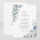 Um convite de casamento em aquarela azul empoeirado refinado, projetado para casais que amam flores suaves e elegância atemporal.